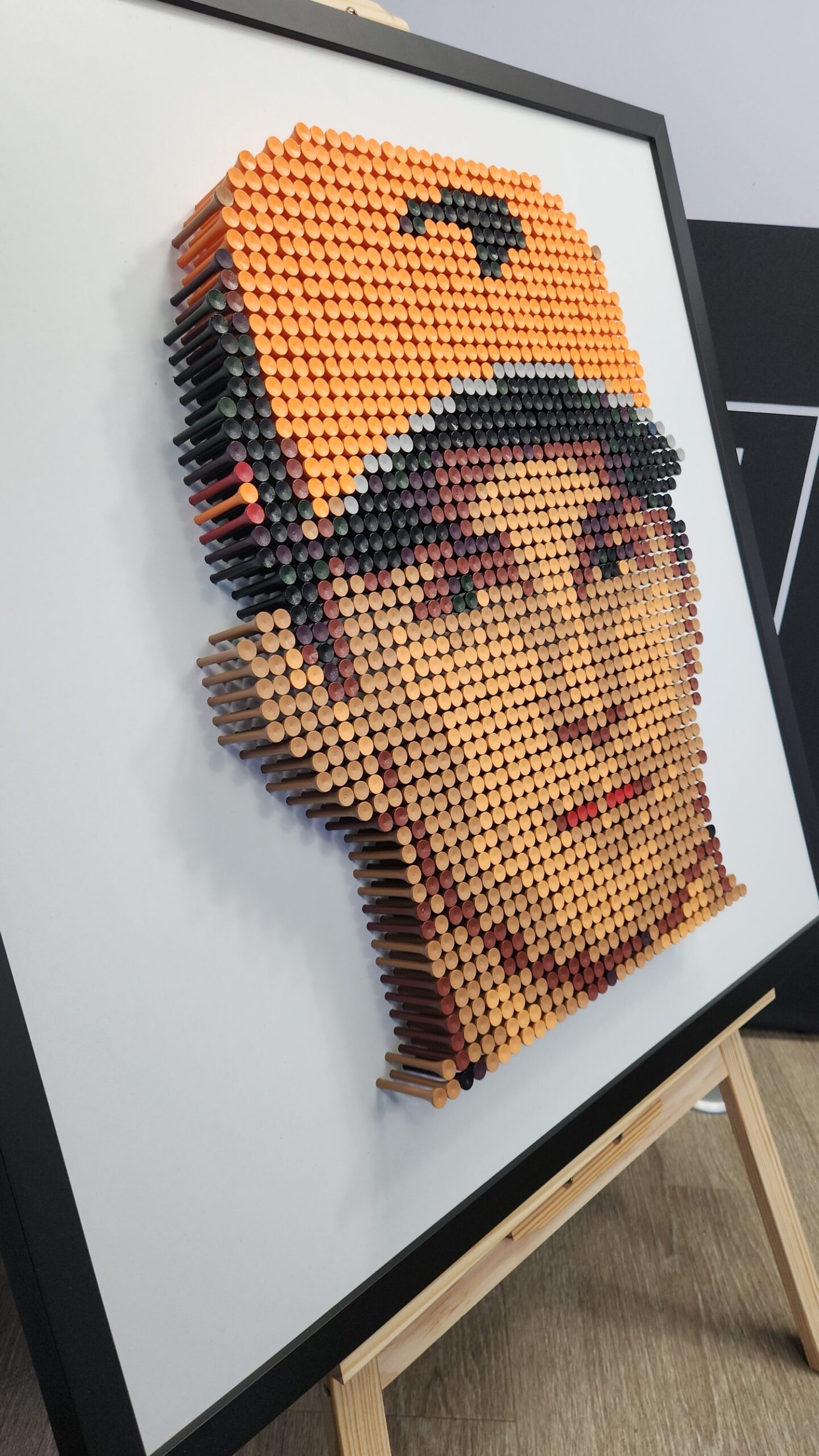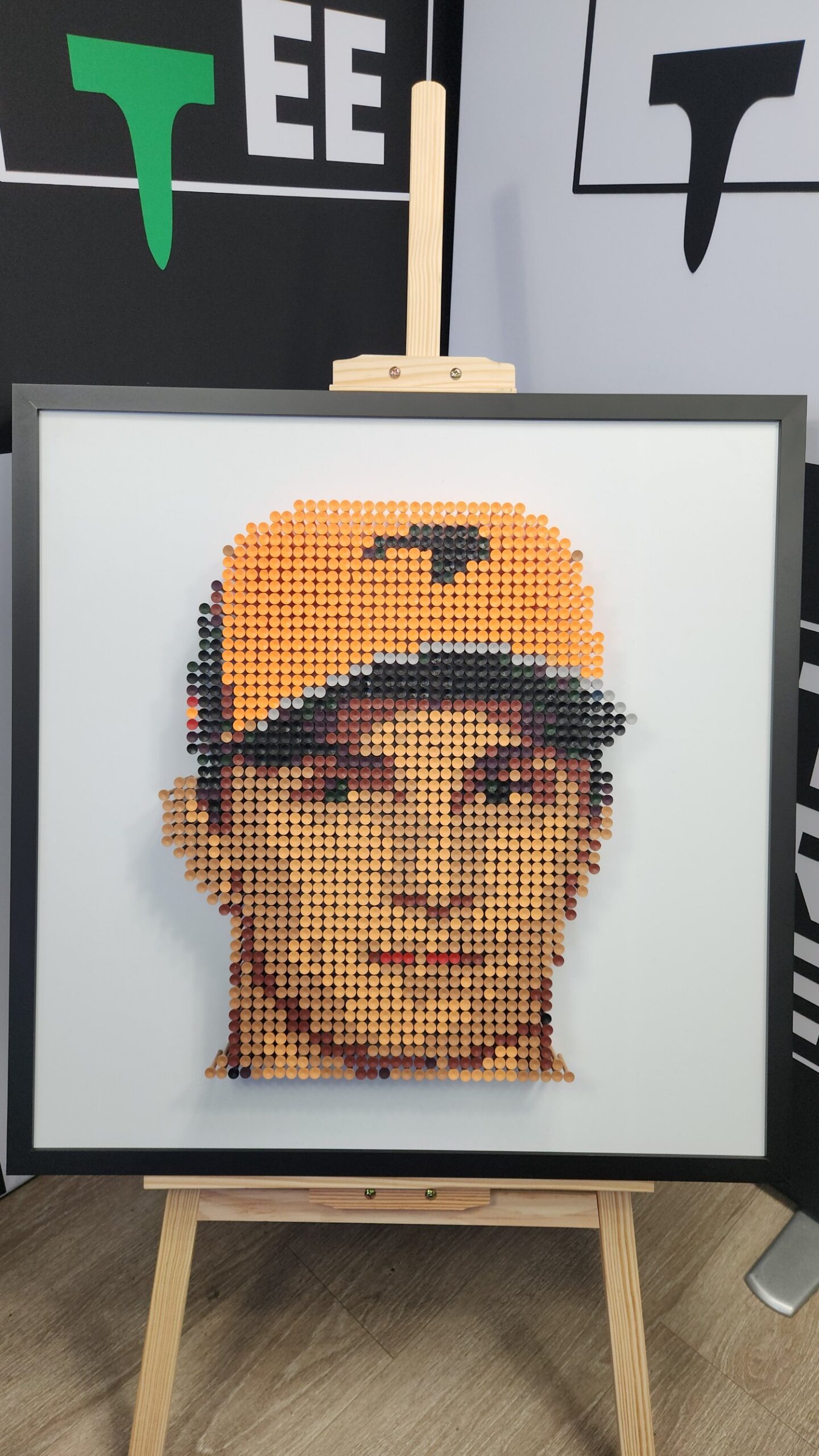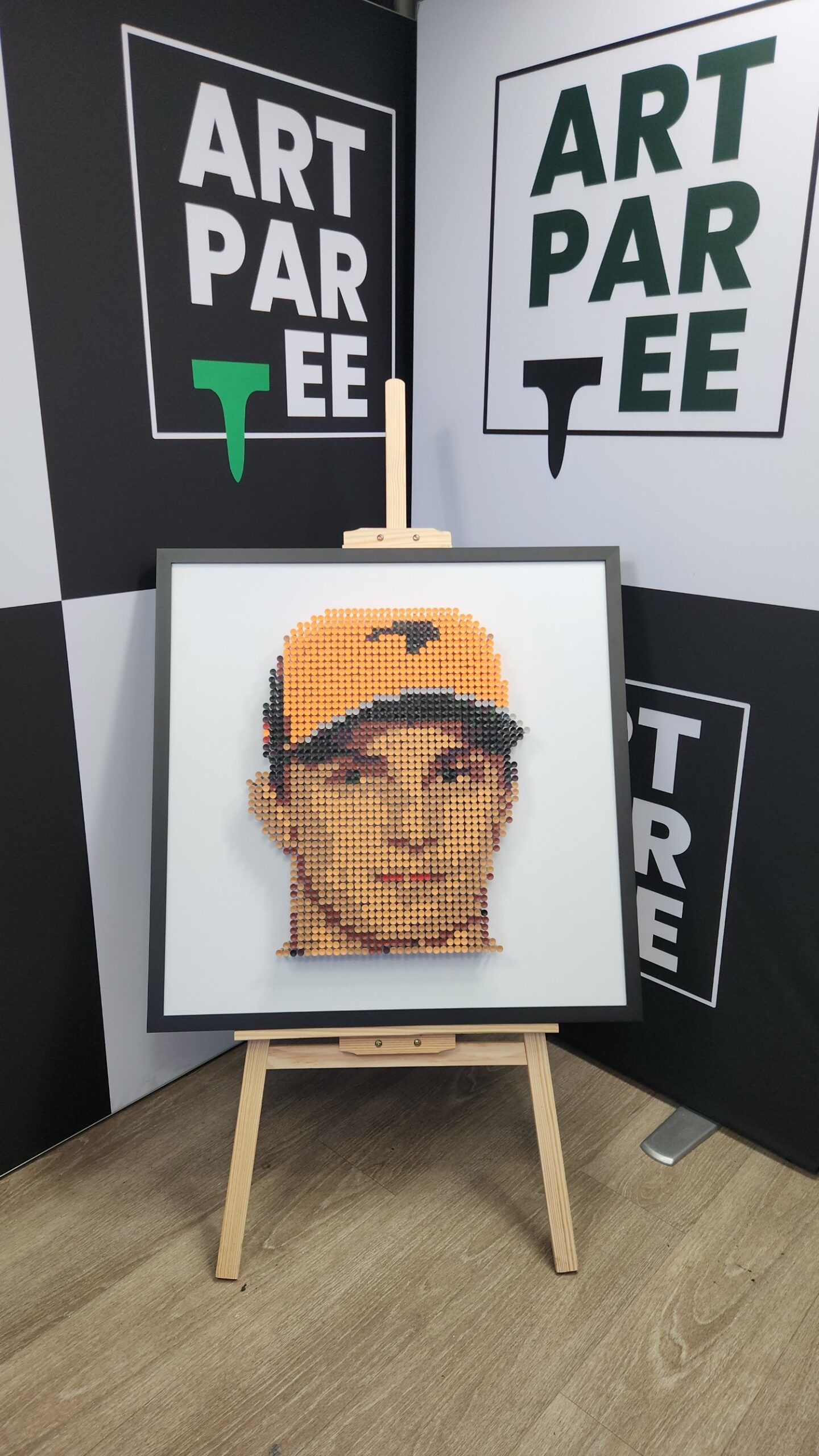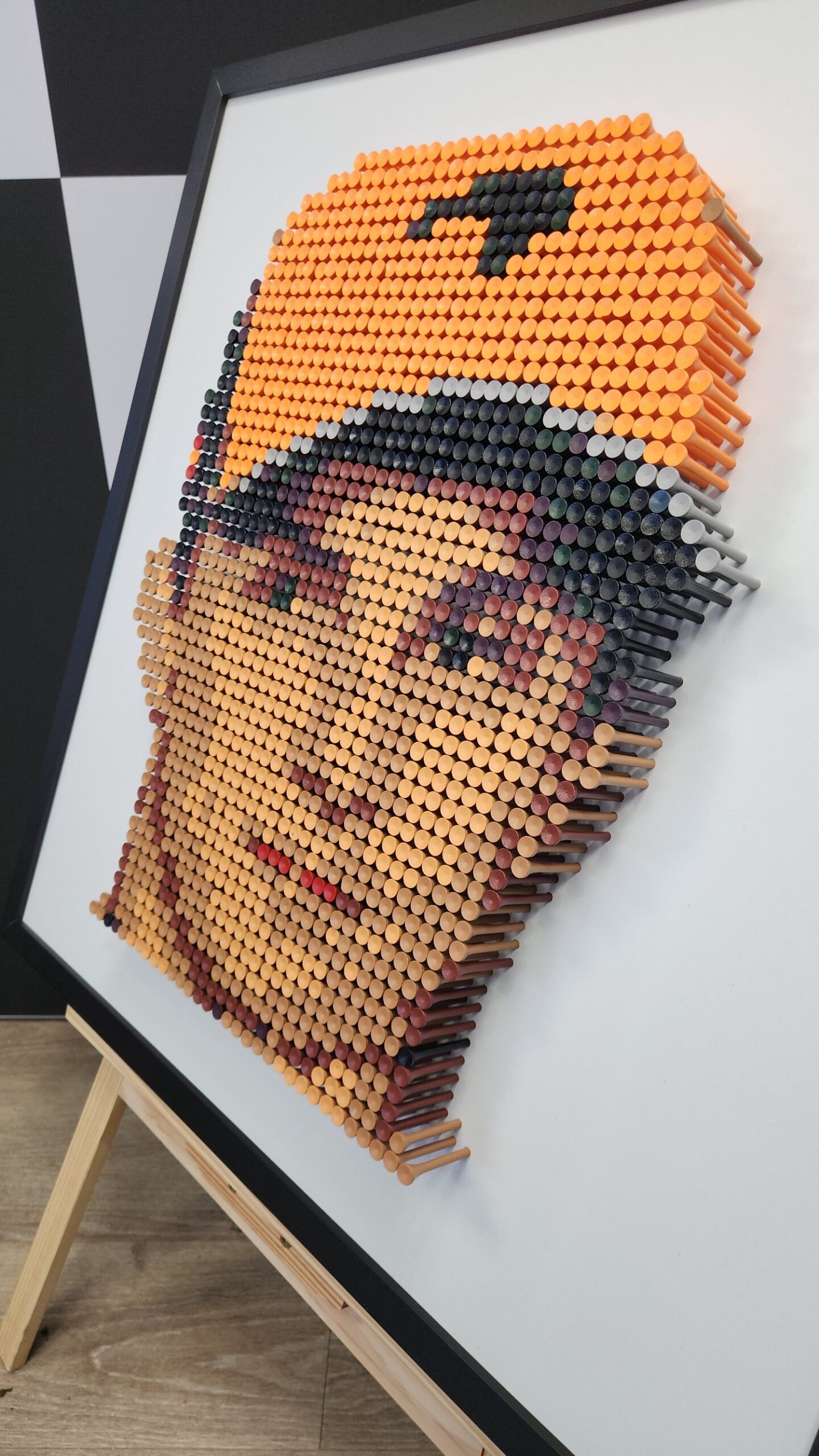 Each piece is a stunning example of bamboo golf tee artistry. Created using thousands of individually placed colored bamboo tees, these artworks capture iconic moments in sporting history through the timeless technique of pointillism.