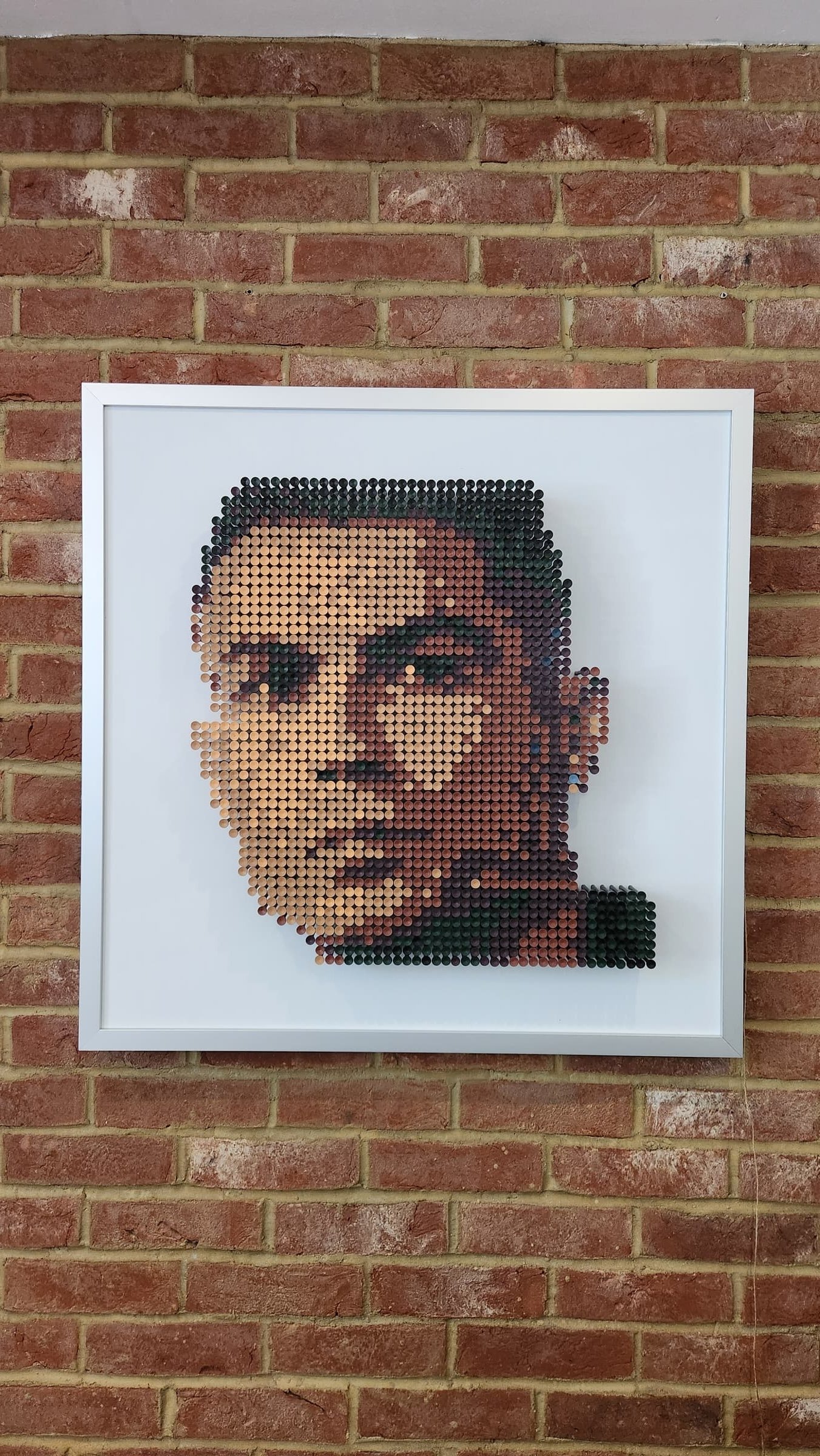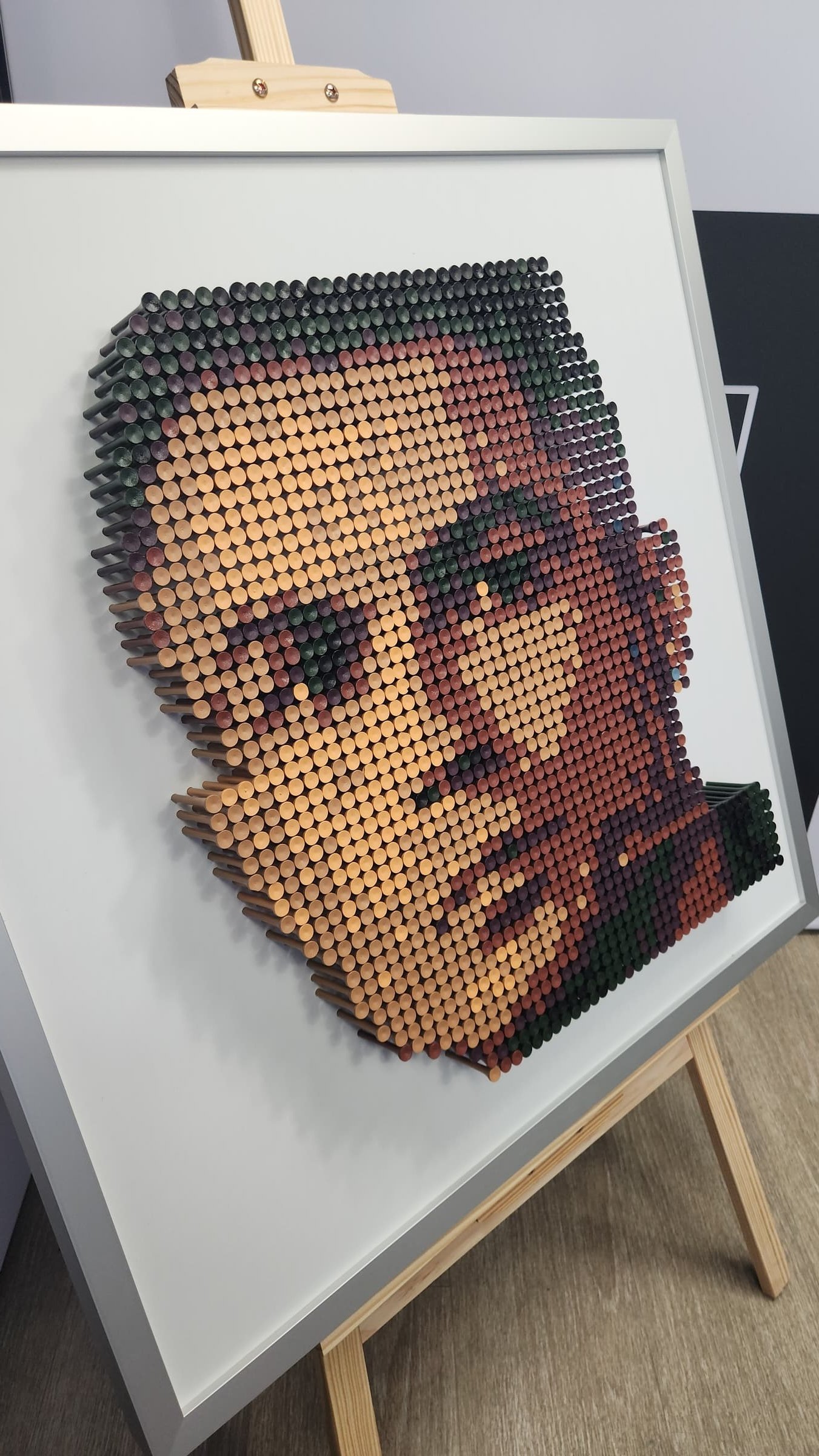 Each piece is a stunning example of bamboo golf tee artistry. Created using thousands of individually placed colored bamboo tees, these artworks capture iconic moments in sporting history through the timeless technique of pointillism.
