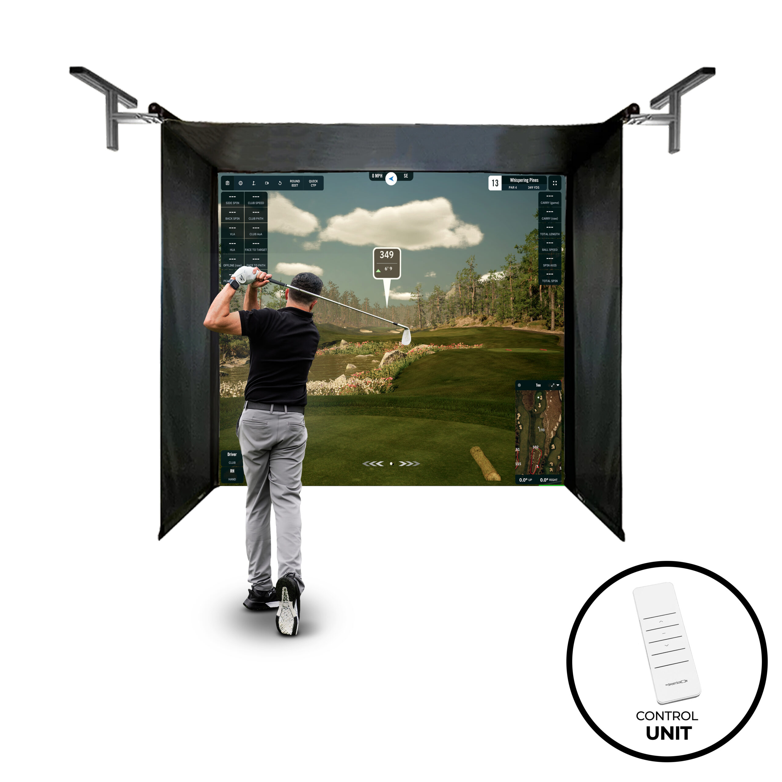 The SportScreen Vanish 11 is a retractable golf simulator screen and enclosure that folds into your ceiling in under 5 minutes. At 3.1m wide with a 4:3 screen ratio, it’s the ideal golf impact screen for standard double garages and multi-use spaces. Choose Hand Crank or Remote Control. Includes premium 3-ply impact screen, side screens, ceiling panel, baffles and universal brackets. 2-year warranty.