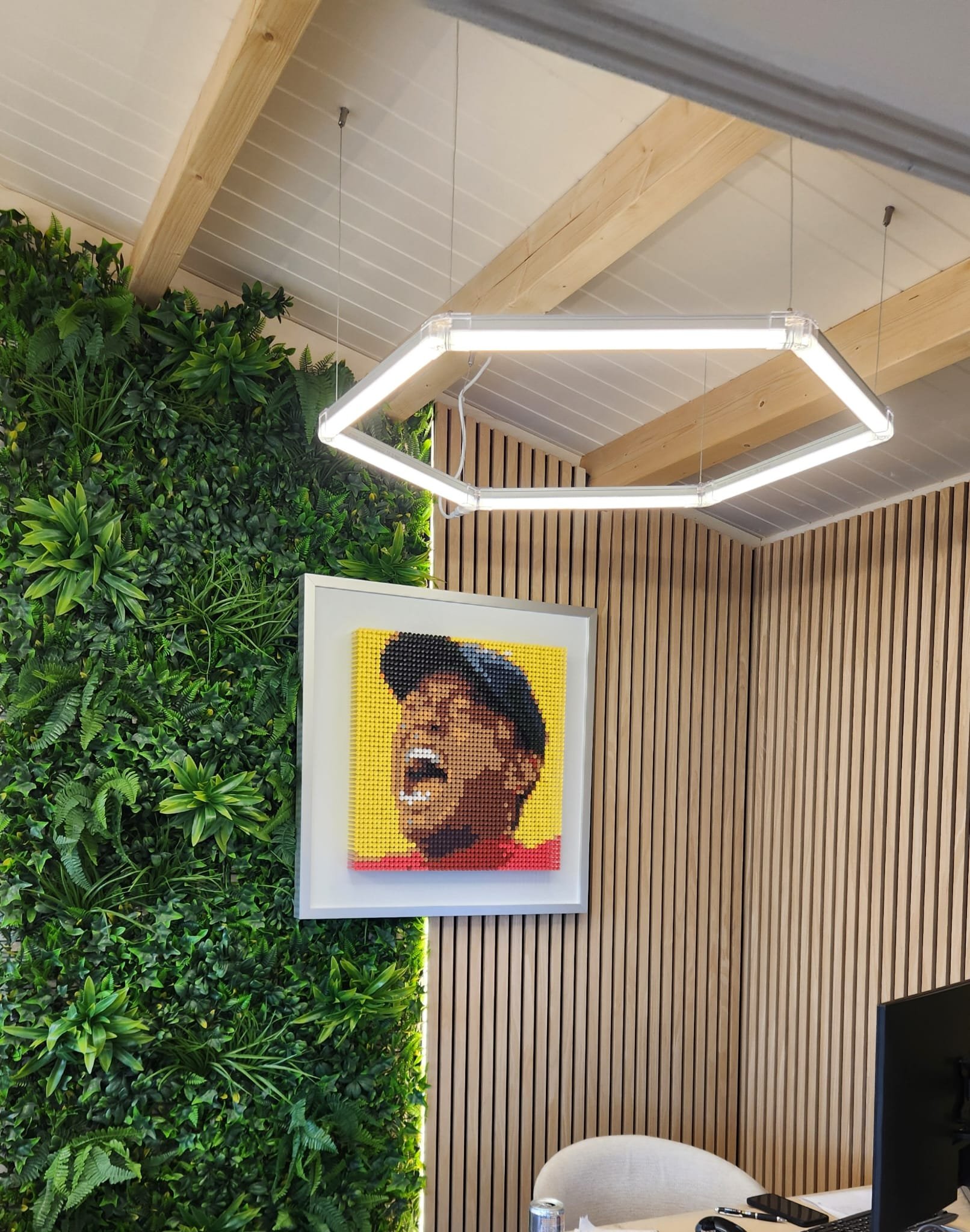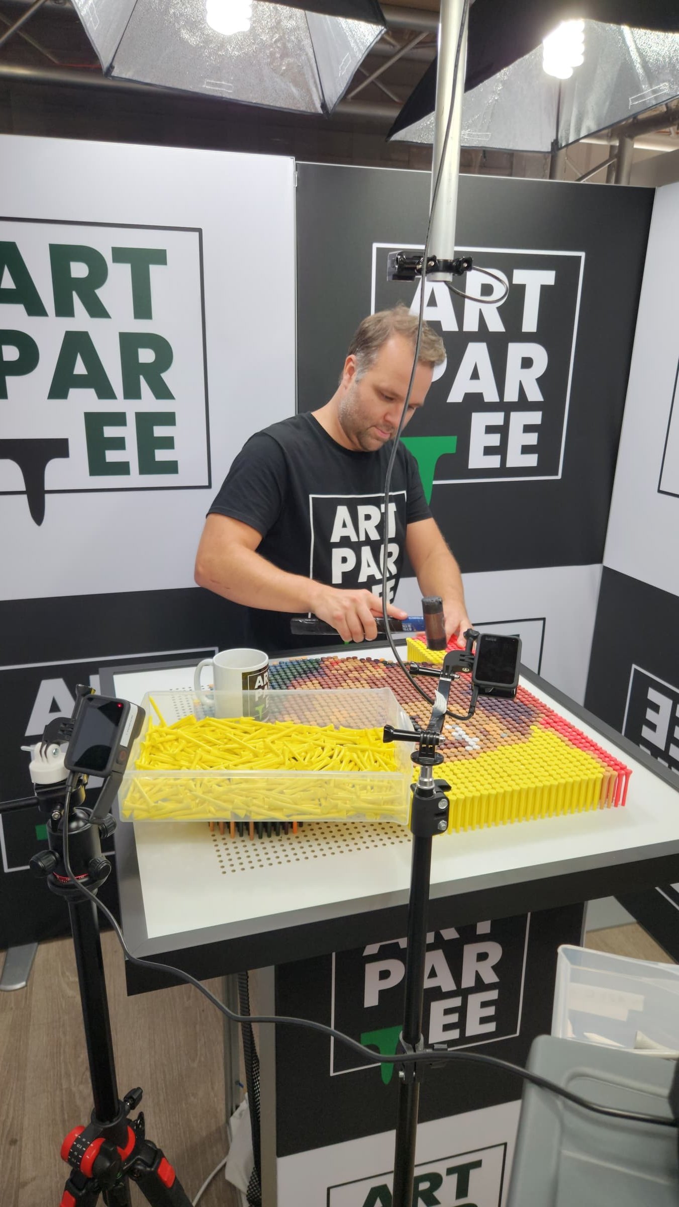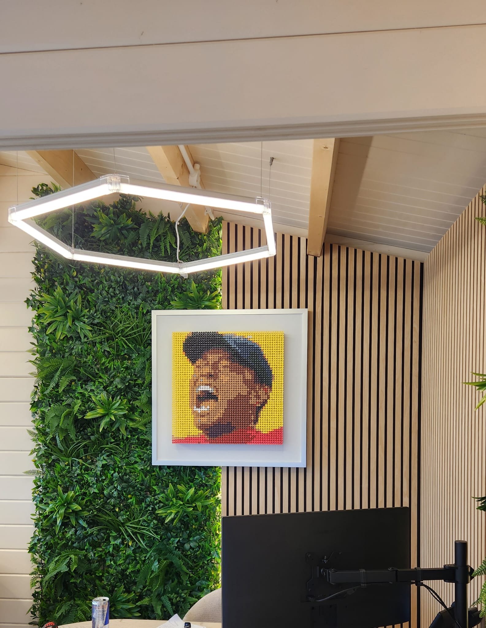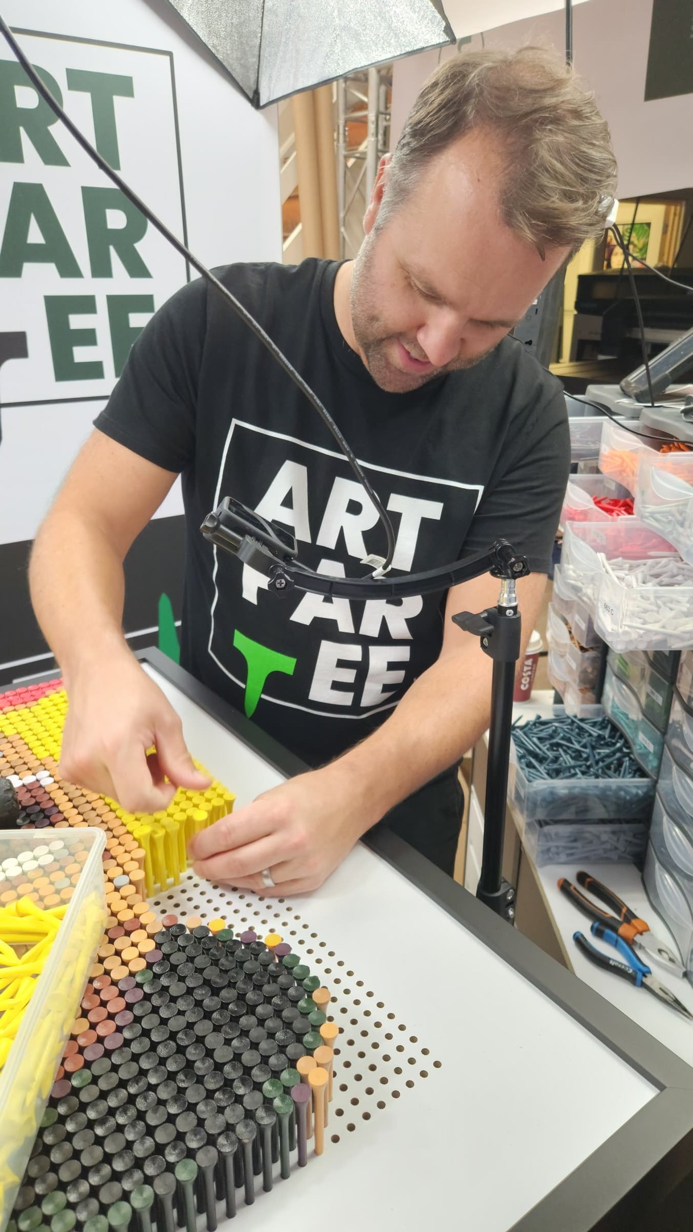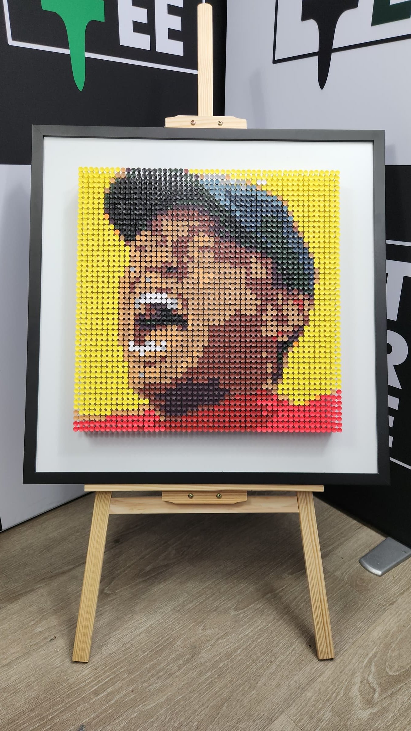Each piece is a stunning example of bamboo golf tee artistry. Created using thousands of individually placed colored bamboo tees, these artworks capture iconic moments in sporting history through the timeless technique of pointillism.