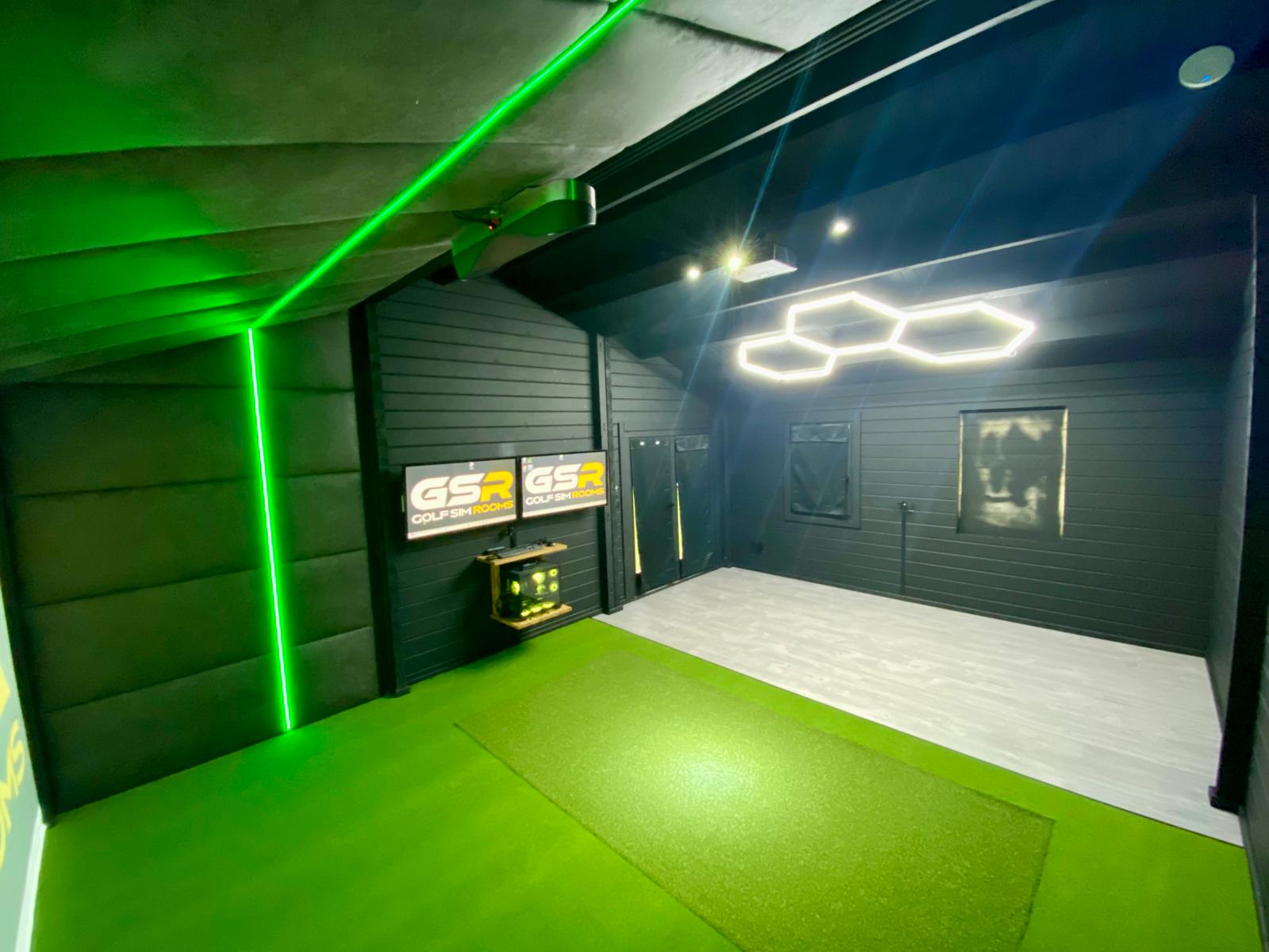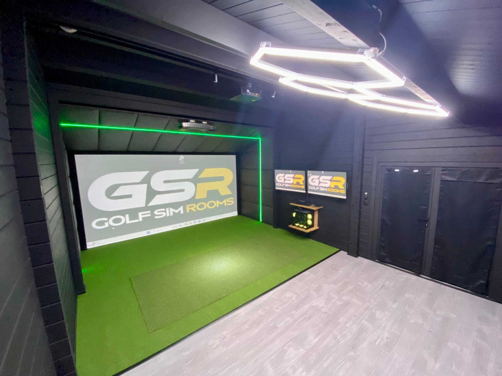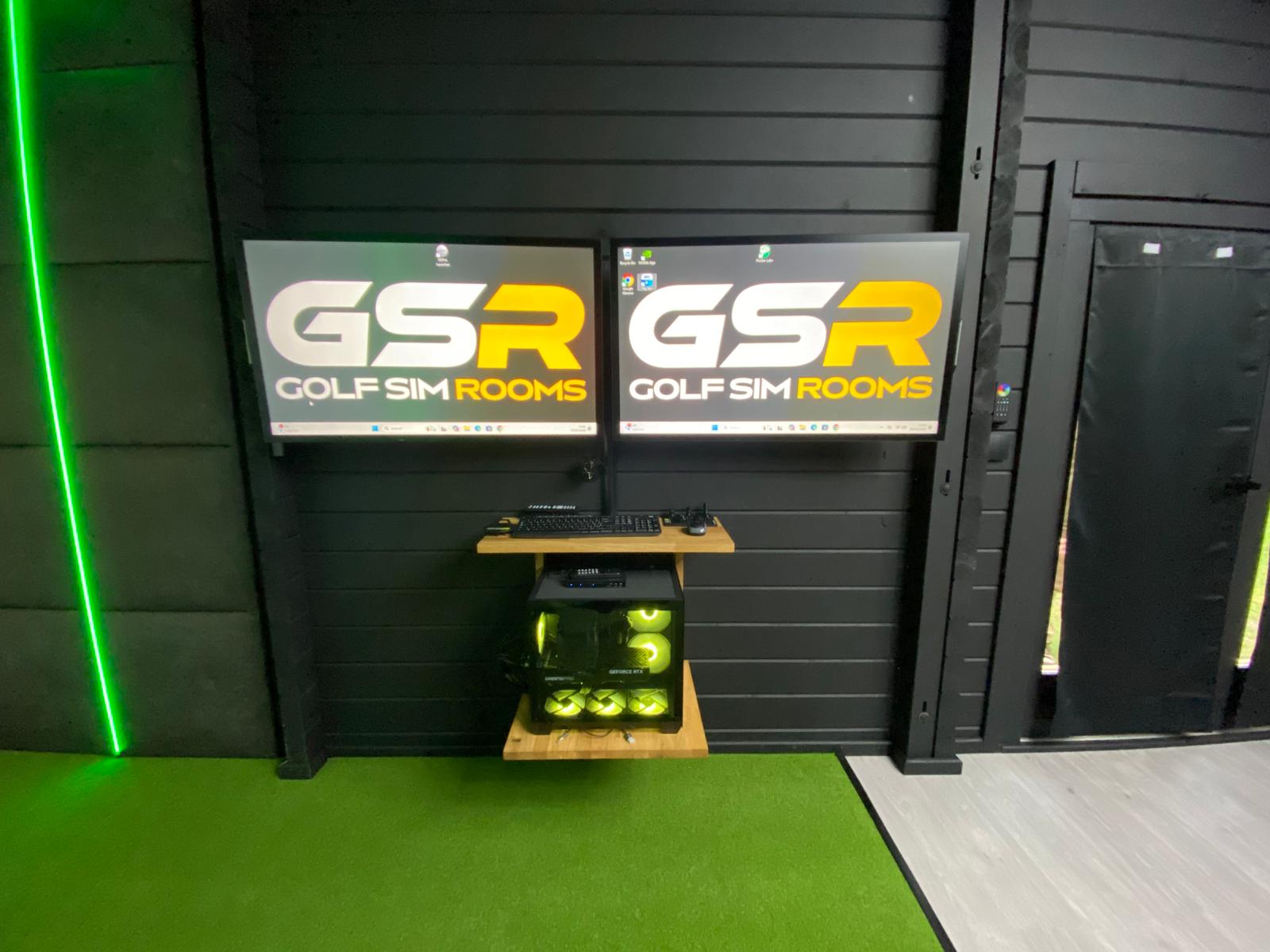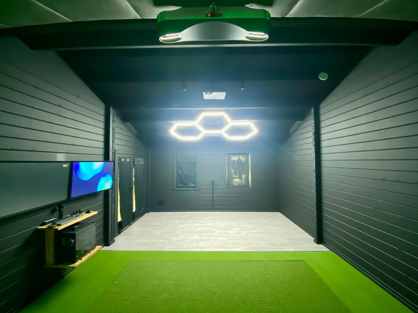 We delivered a fully bespoke, insulated golf simulator cabin designed specifically to house a complete simulator system. The structure was engineered to allow full swing freedom, overhead launch monitor installation, and controlled lighting conditions. Internally, the cabin features impact-resistant wall finishes, professional golf turf, acoustic consideration, and a high-definition projection screen. A dual-monitor control station was integrated for seamless simulator operation, while custom LED lighting and dark interior finishes were used to enhance immersion and visual clarity.